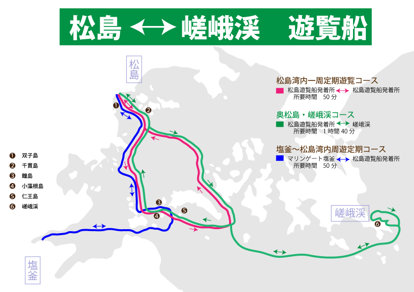 | 住所: | 宮城県宮城郡松島町松島字町内85 松島巡り観光船企業組合 |